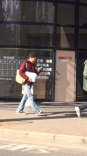 閉まっている和菓子屋さんの前でそのお店の和菓子を食べ歩き